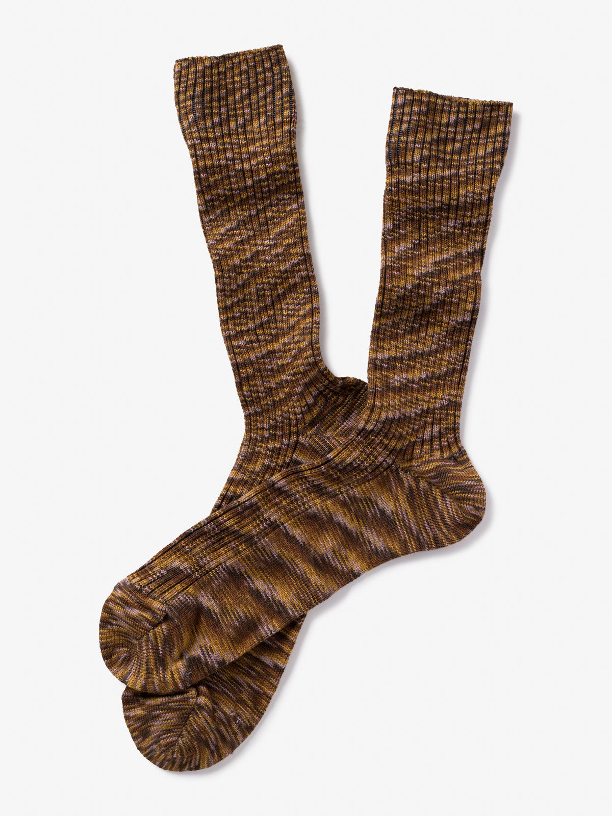 Ribbed socks made from blended cotton yarns.