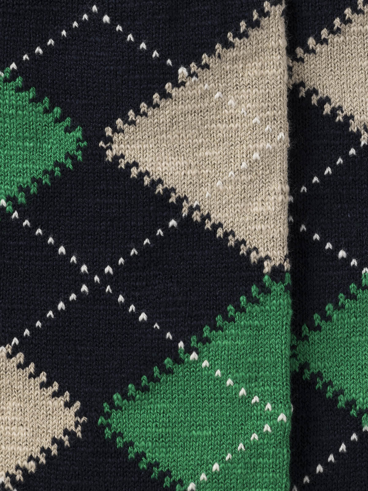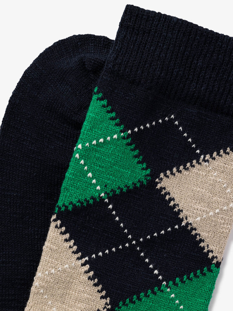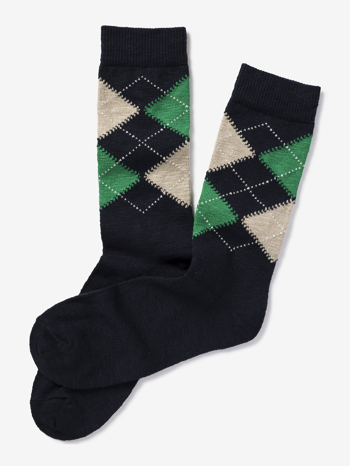 Pas de nostalgie mais une célébration de l’âge d’or des années 80 avec ces chaussettes ornées du célèbre « Argyle » ou motifs jacquards.