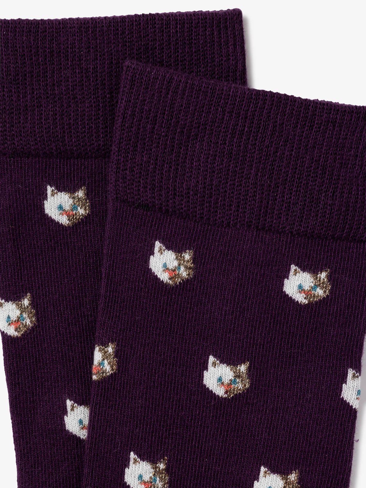 Ce dessin à tête de chat est l'atout maître d'un look de minette pour vos chaussettes.