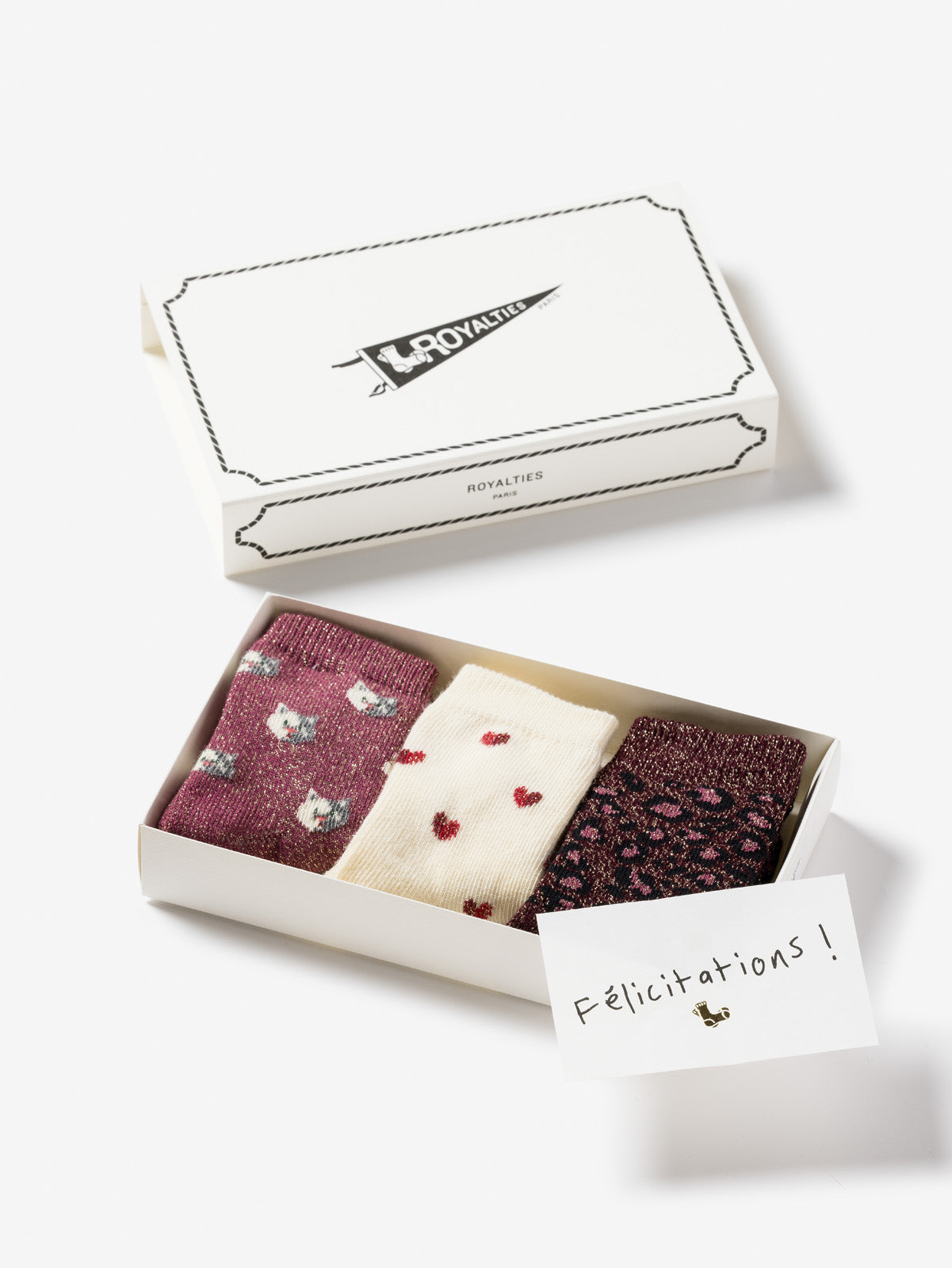 Un coffret de 3 paires des chaussettes bébé.