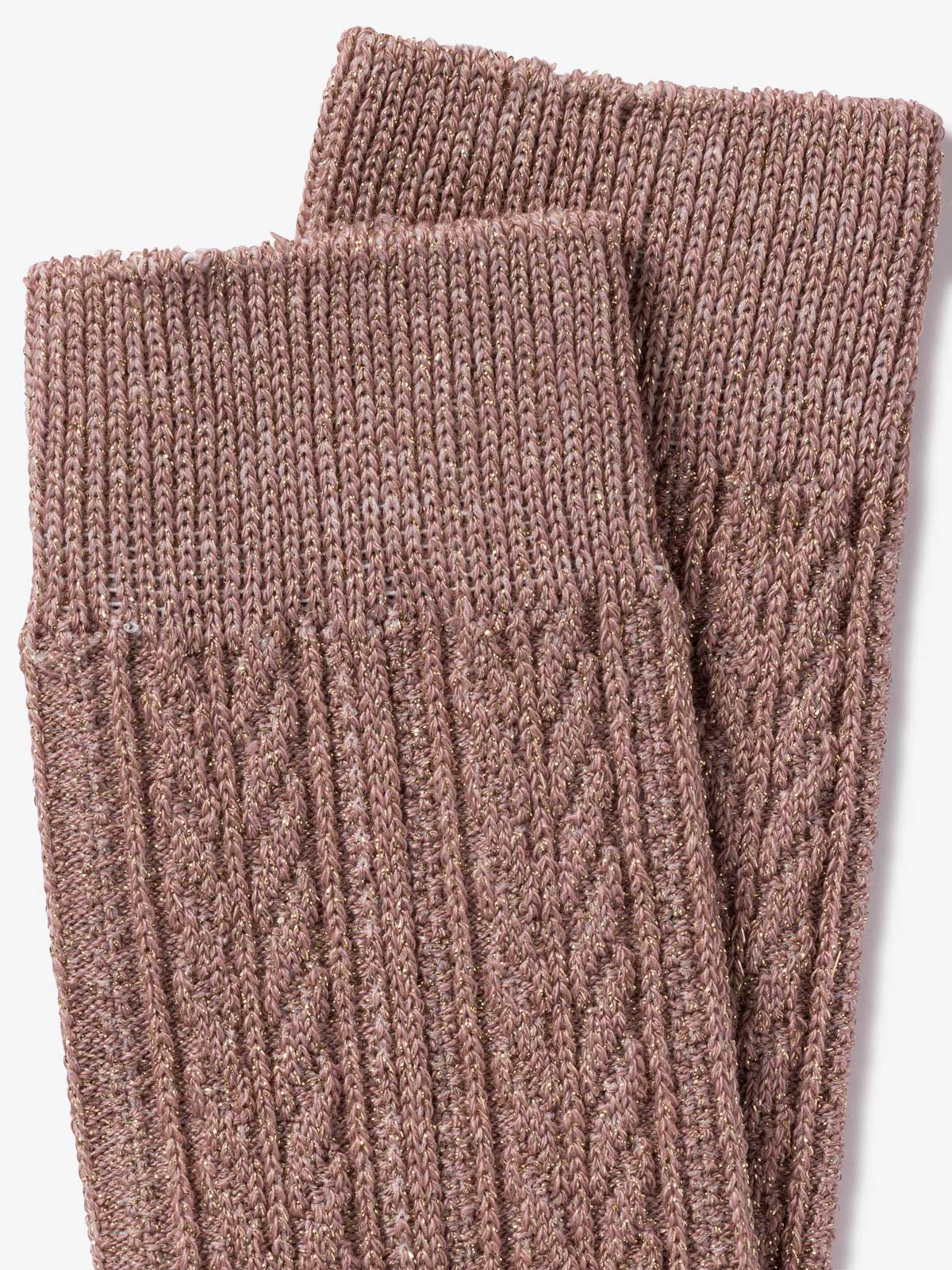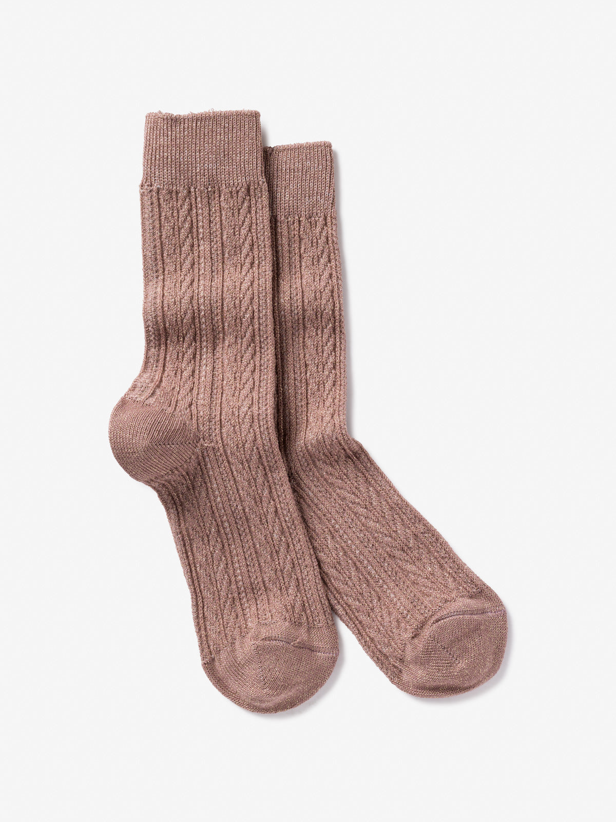 Notre modèle signature est inspiré des points fantaisie redécouverts dans des catalogues anciens de tricot main. Ces chaussettes sont réalisées sur des machines traditionnelles selon la technique du tricotage "épi de blé", unique et élégant.